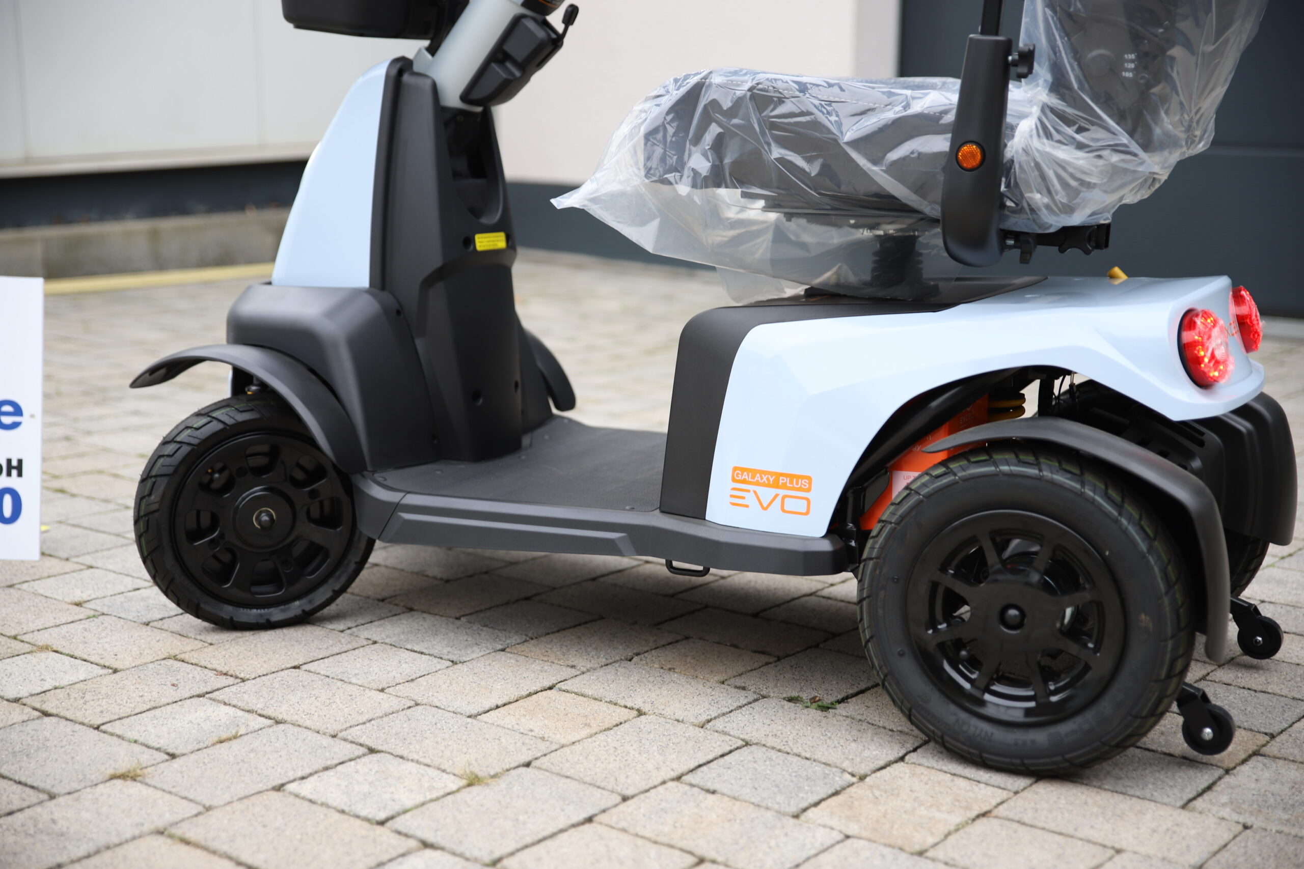 Die ergonomisch gestaltete Lenkung sorgt für ein entspanntes und direktes Fahrgefühl. Scharfe Kurven lassen sich mit minimalem Lenkeinschlag meistern, wodurch sich der Scooter leicht und wendig anfühlt. Dank seiner zusätzlichen Federung ist der Galaxy Plus EVO 4 die ideale Wahl für alle, die zusätzliche Unterstützung benötigen, beispielsweise bei Rückenproblemen.